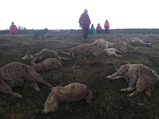Se encontraron más de 100 borregos muertos con una herida en el cuello en Chimborazo. El atentado se produjo en la madrugada del miércoles, día en el que Correa planeaba visitar a sus coidearios, miembros de la comunidad de Guamote afirman haber visto un chupacabras.
